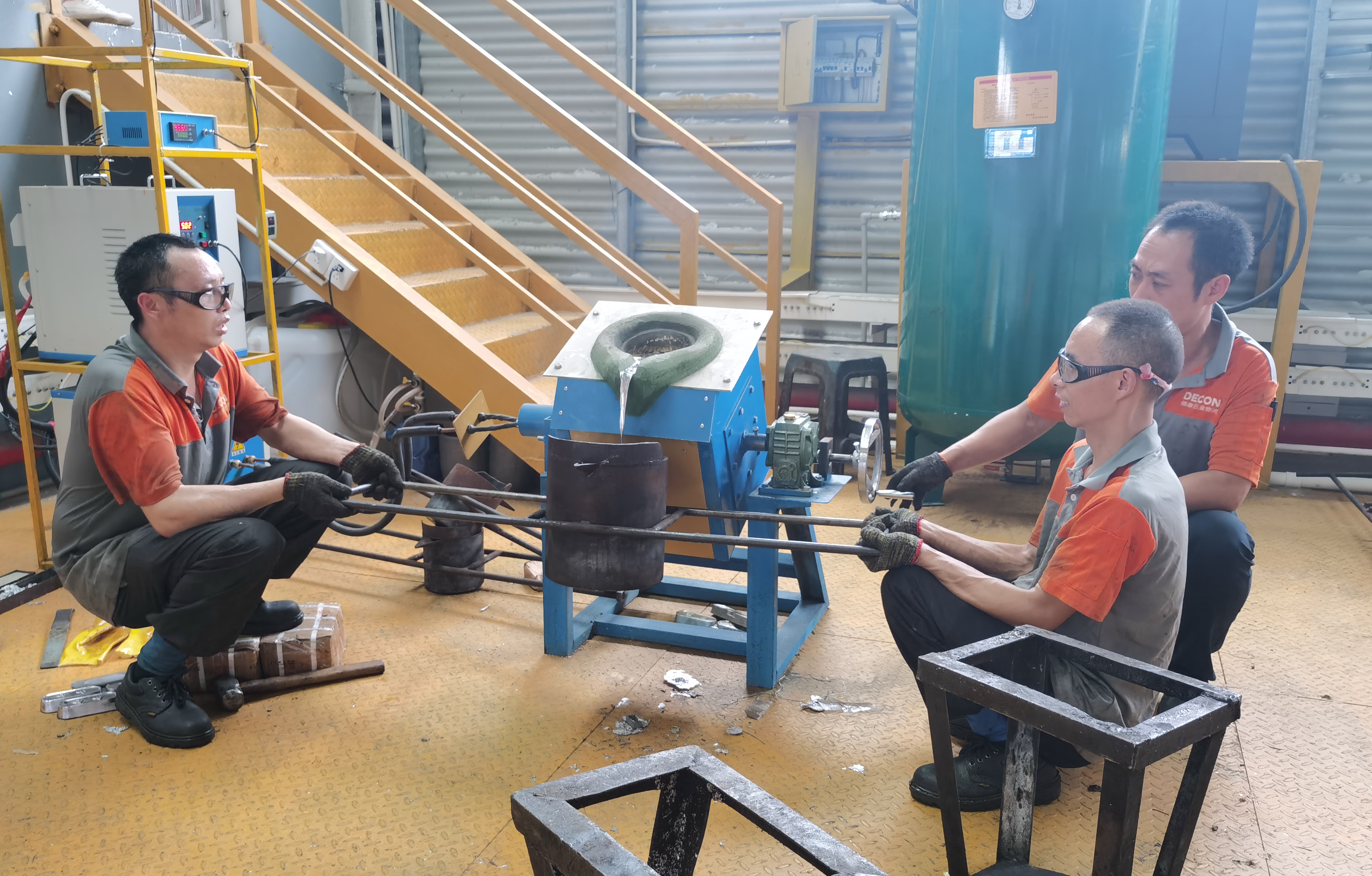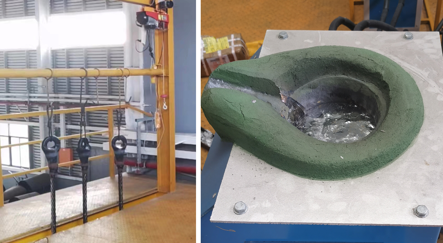 澆鑄平臺是鋼絲繩索節(jié)澆鑄品質(zhì)的重要保證。澆鑄平臺離地的有效高度可以確保鋼絲繩的軸向垂直長度,以及鋼絲繩中心與索節(jié)中心處于同一垂直軸線上,確保鋼絲繩在后期應(yīng)用中鋼絲均勻受力。澆鑄平臺同時還配置了電動葫蘆、高功率大容量中頻熱熔爐與精準溫控儀等設(shè)備,可高效控制合金熔融溫度,以保證澆鑄工藝的效率及產(chǎn)品質(zhì)量。另外,平臺獨特的設(shè)計可一次性同時進行多條鋼絲繩索節(jié)澆鑄。