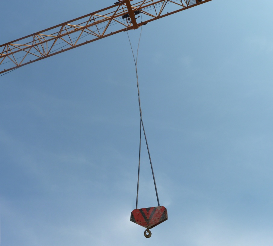 塔吊起升繩由于起升高度較高,不宜選用6股或8股等非阻旋轉(zhuǎn)單層股鋼絲繩,否則將造成吊鉤旋轉(zhuǎn)。