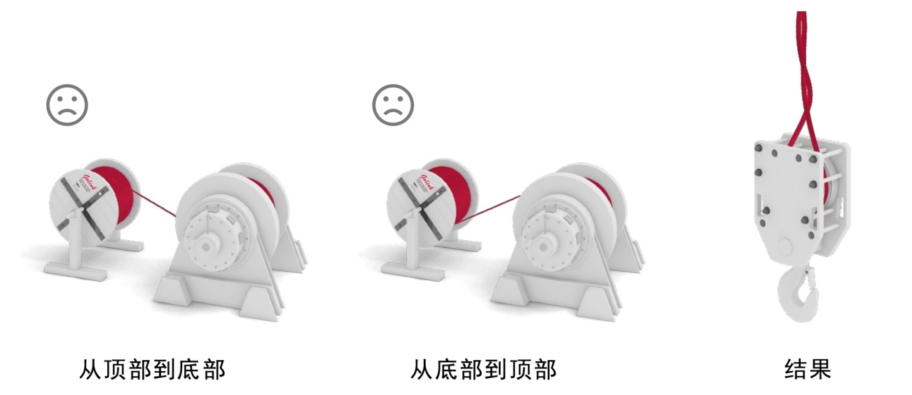 新繩在安裝過程中,由于不正確的操作帶入扭轉(zhuǎn)應(yīng)力。