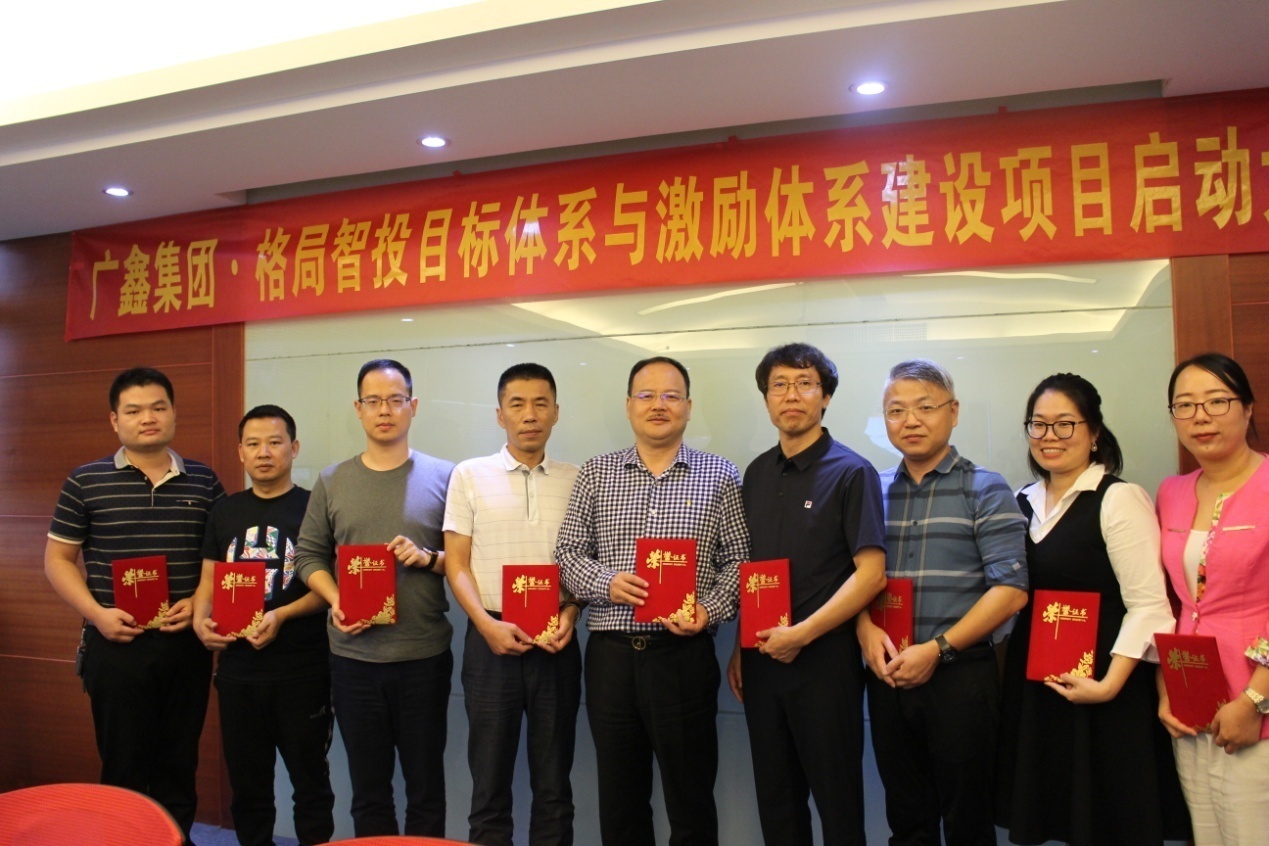 隨后格局智投李攀慶老師作項目宣導(dǎo),對此次項目目標(biāo)、項目重點(diǎn)、咨詢思路及實施計劃、工作機(jī)制做了簡要的說明。廣鑫集團(tuán)副總裁劉琪先生代表項目組領(lǐng)導(dǎo)小組宣布《關(guān)于成立廣鑫集團(tuán)目標(biāo)體系與激勵體系項目領(lǐng)導(dǎo)及聯(lián)合工作小組的決定》,并由領(lǐng)導(dǎo)小組給項目成員頒發(fā)聘書。在場的所有成員在項目總負(fù)責(zé)人帶領(lǐng)下完成承諾性宣誓。相信通過新型激勵體系的落地,能促進(jìn)公司管理更上新臺階,開啟合作共贏的新時代篇章。