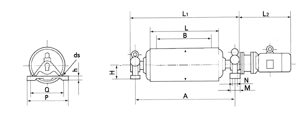 外裝式電動滾筒是介于傳統(tǒng)的電機(jī)一減速機(jī)一傳動滾筒的開式傳動與普通電動滾簡驅(qū)動之間的種輸送機(jī)驅(qū)動裝置,它具有電機(jī)在外散熱性能好,而且容易對電機(jī)進(jìn)行維修或更換等優(yōu)點(diǎn)。在占有空間位置和制造材料方面,均比開式傳動減少三分之ー左右。但比普通電動滾筒又増加三分之ー左右。外裝式電動滾筒是目前國內(nèi)工業(yè)要求下的產(chǎn)物,因?yàn)閺倪壿嬙韴D上分析,主要部件仍屬串聯(lián)聯(lián)接,而且至少増加一件傳動軸。從可靠性上分析,并沒有增加可靠性??墒怯捎谒碾姍C(jī)散熱性好電機(jī)的安裝、維修和檢查方便,以及在占據(jù)空間位置及制造材料上,比老式的開式傳動優(yōu)越,所以國內(nèi)外裝式電動滾筒多用在大功率上。外裝式電動滾筒,由于電機(jī)散熱的優(yōu)點(diǎn),在某些大功率場合還是較合適的驅(qū)動裝置