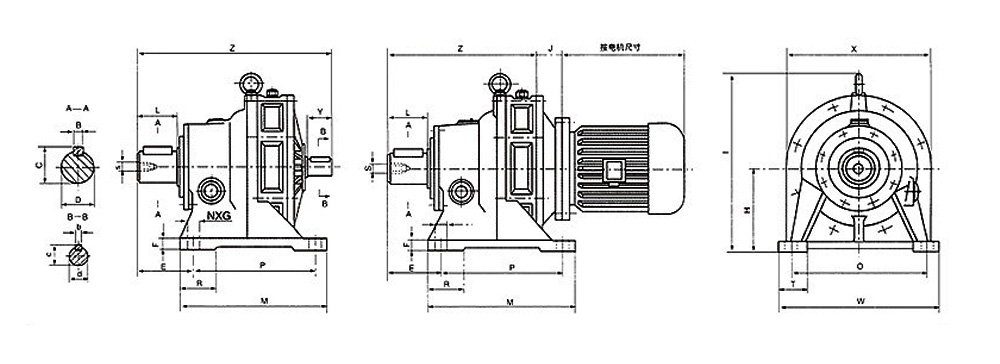 BW擺線針輪減速機(jī)為雙軸型、臥式安裝。
