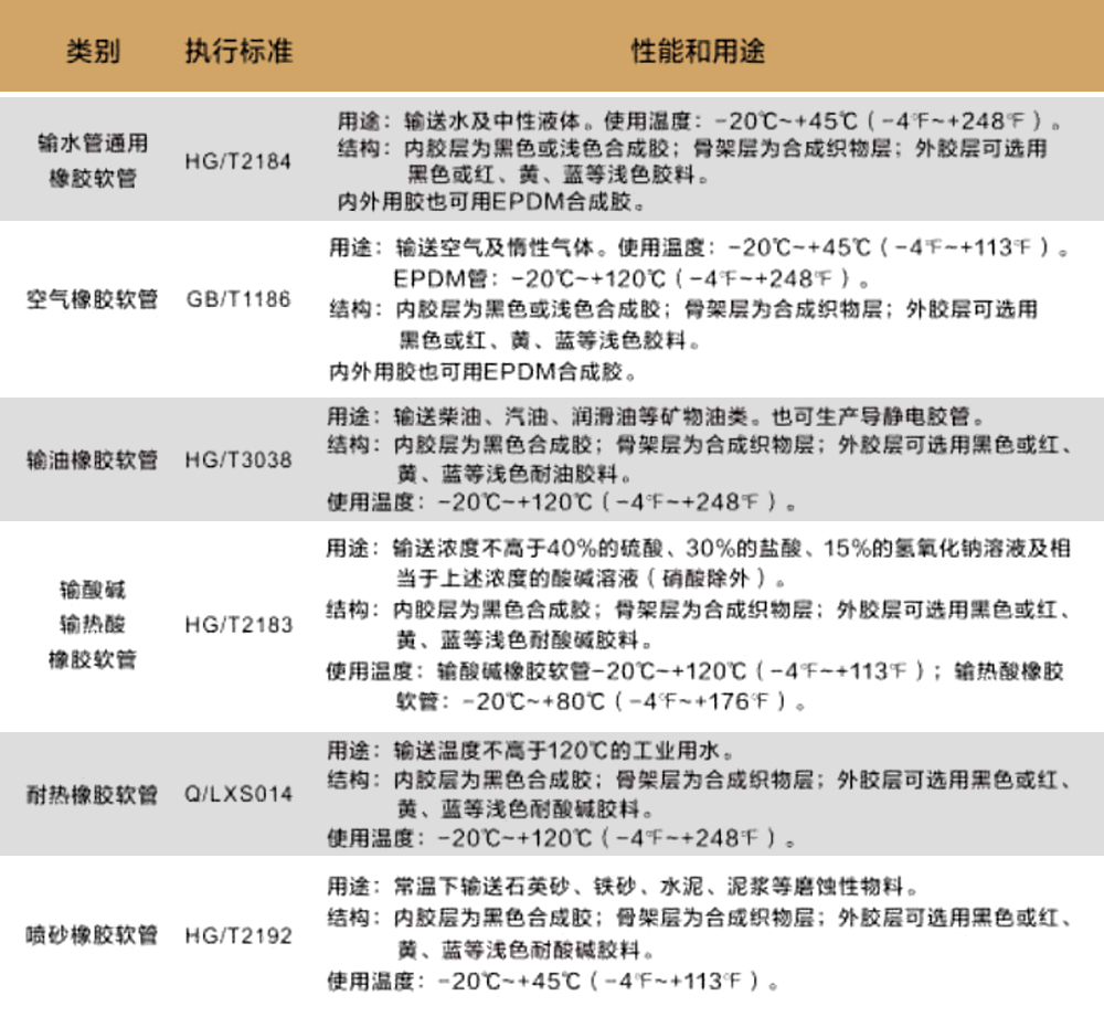 產(chǎn)品用途:各類(lèi)型夾布膠管是根據(jù)輸送介質(zhì)不同選用相應(yīng)材料制造。產(chǎn)品結(jié)構(gòu)設(shè)計(jì)合理、質(zhì)量?jī)?yōu)良、堅(jiān)固耐用,是一種用來(lái)各種液體粘流體和粉狀固體等物料介質(zhì)的柔性膠管。