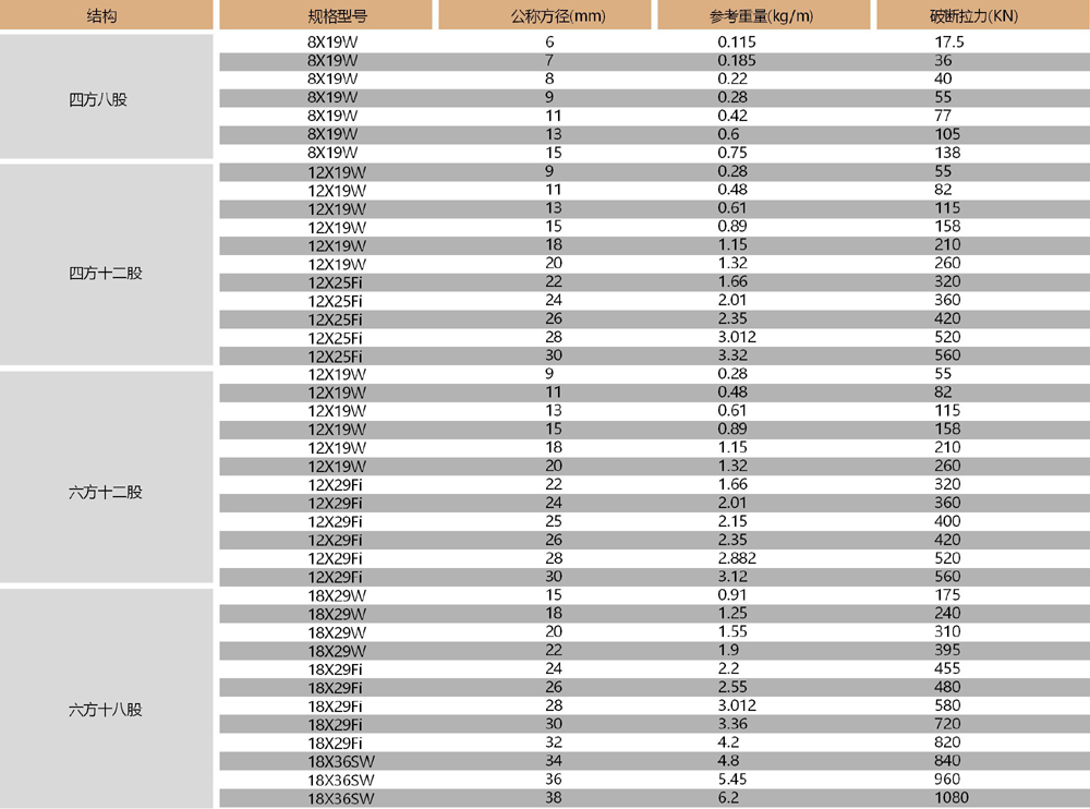 產(chǎn)品特點:防扭鋼絲繩是采用高強度熱鍍鋅優(yōu)質(zhì)航空鋼絲經(jīng)特殊工藝加工而成的特種紡織型鋼絲繩。因其截面呈現(xiàn)正方形或六方形,受力時不扭轉(zhuǎn),又稱方型不旋轉(zhuǎn)鋼絲繩,與普通圓股鋼絲繩相比具有強度高、柔韌性好、防腐防銹、不打金鉤、不易打結(jié)、使用壽命長等優(yōu)點。