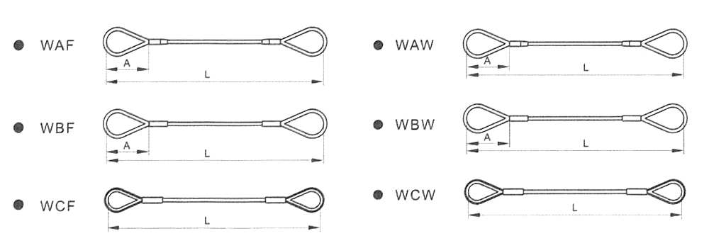 直徑φ90以上壓制鋼絲繩索具形式為毎端壓制兩個(gè)鋁合金壓制接頭;