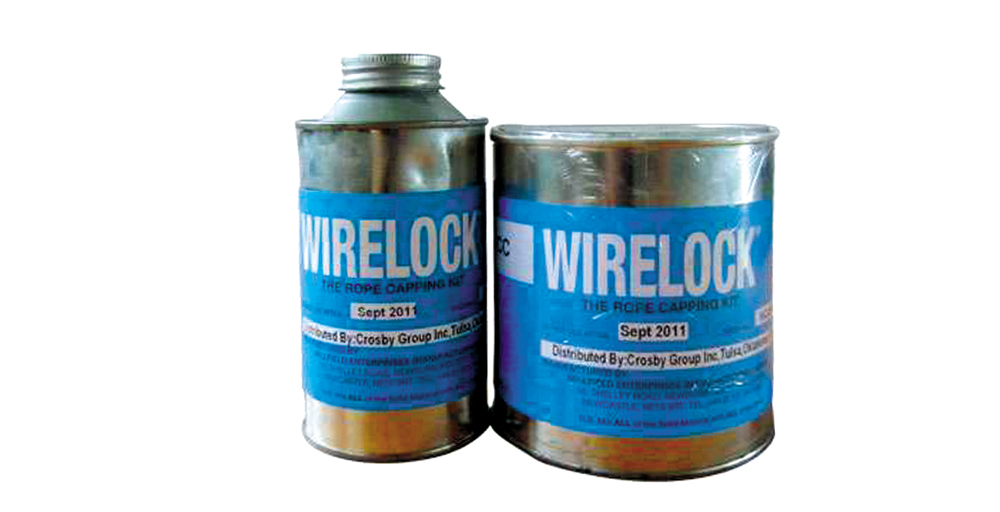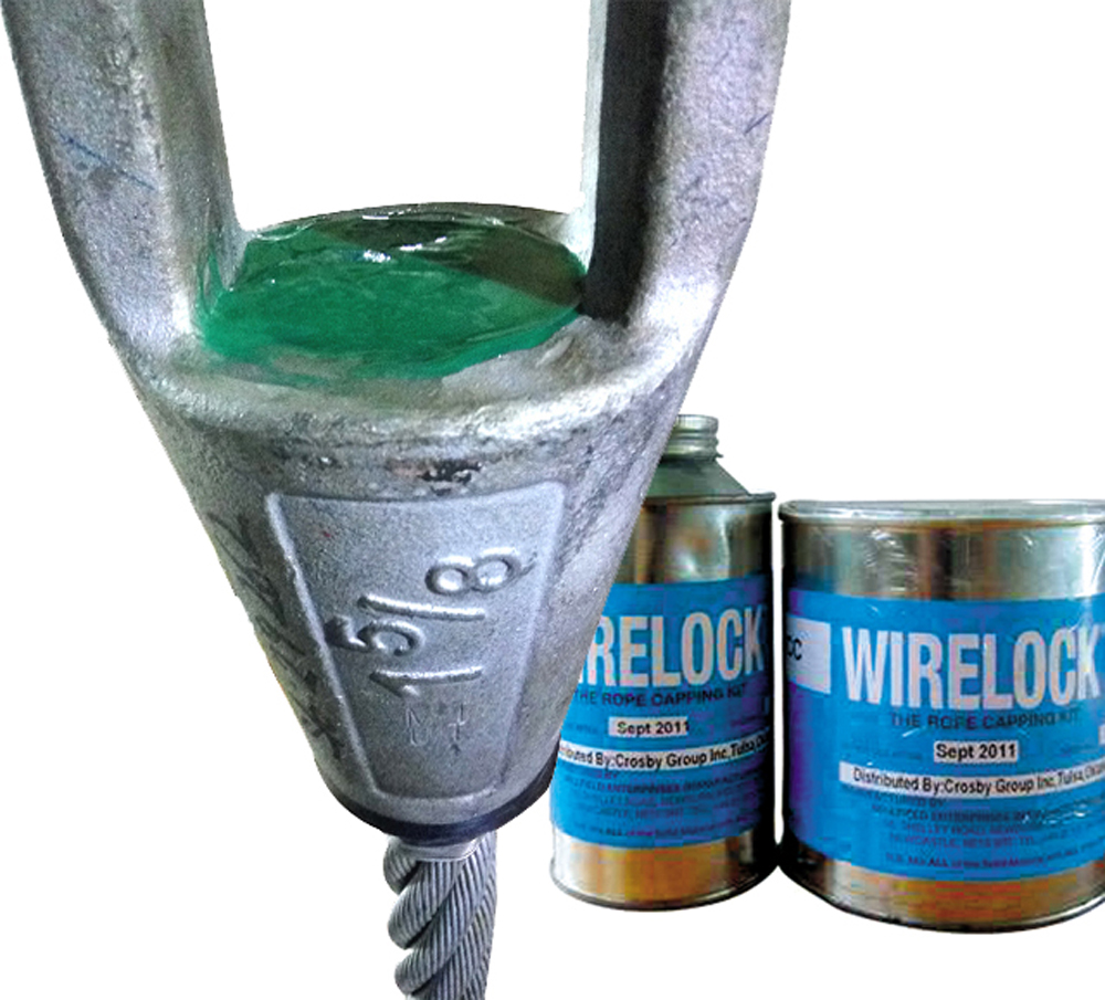 WIRELOCK,又稱鋼繩膠水或鋼繩樹脂,由英國MILLFIELD公司制造,是一個用來加工鋼絲繩索節(jié)的革新產(chǎn)品,可以在常溫下凝固,避免了傳統(tǒng)鋅合金澆鑄過程中加熱溫度過高而損傷鋼絲繩的可能,因此,提升了索節(jié)的使用安全性。