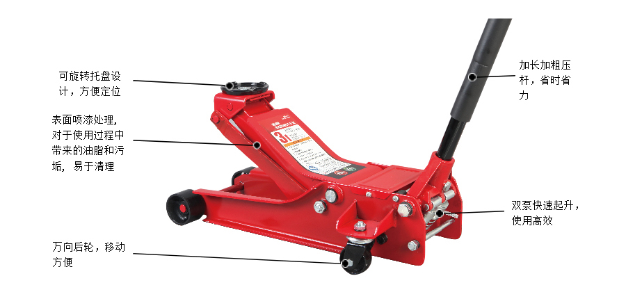 該液壓千斤頂利用重型車本身的自卸油泵或轉(zhuǎn)向助力油泵輸出的高壓油來實現(xiàn)千斤頂?shù)捻斊?,具有省時省力、使用和攜帶方便的優(yōu)點,適用于自卸車、半掛車、平板車等重型車輛。