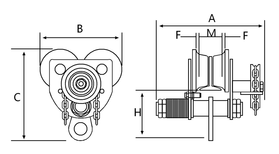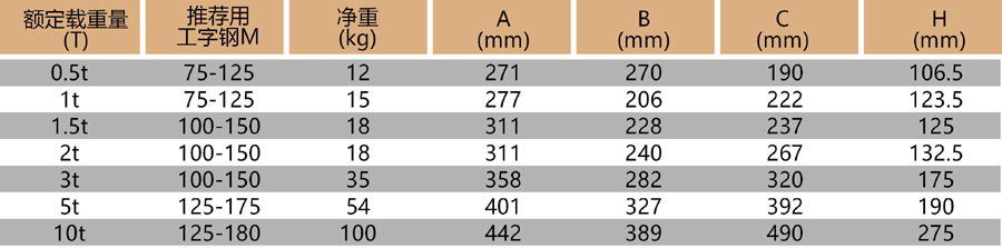 行走承載能力0.5T-30T,其作用于工字鋼上左右行走。