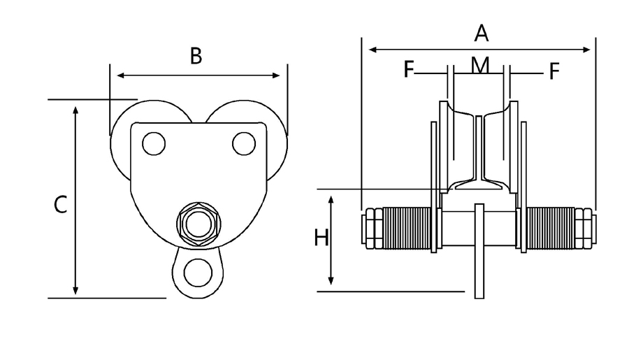 若牽引小車或推動(dòng)起吊重物使可使小車在軌道上運(yùn)行。