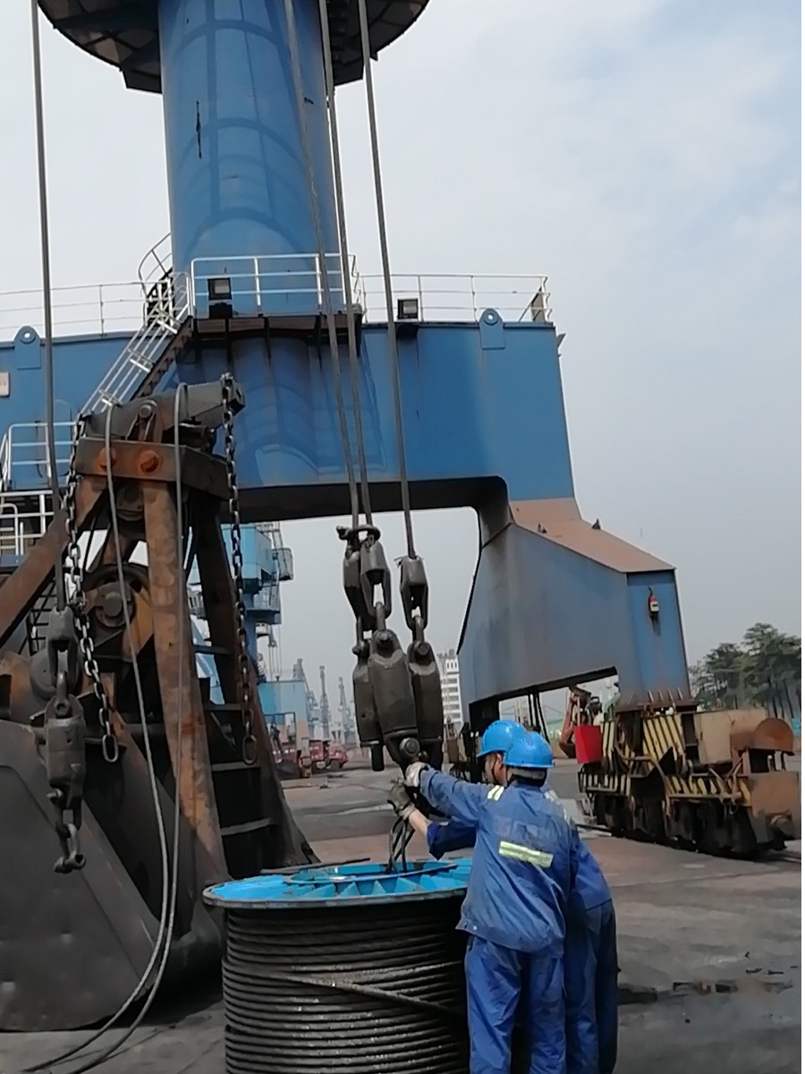 鋼絲繩安裝、換繩屬于有較強(qiáng)技術(shù)要求及安全要求的作業(yè),有些結(jié)構(gòu)的鋼絲繩一旦沒有科學(xué)安裝,將嚴(yán)重影響鋼絲繩的使用壽命甚至當(dāng)場(chǎng)報(bào)廢。廣鑫建設(shè)了強(qiáng)大的技術(shù)設(shè)備服務(wù)團(tuán)隊(duì),在全國(guó)各地主要港口均有駐點(diǎn),除為港口碼頭設(shè)備提供維修養(yǎng)護(hù)服務(wù),鋼繩換繩業(yè)務(wù)也是主要服務(wù)項(xiàng)目。