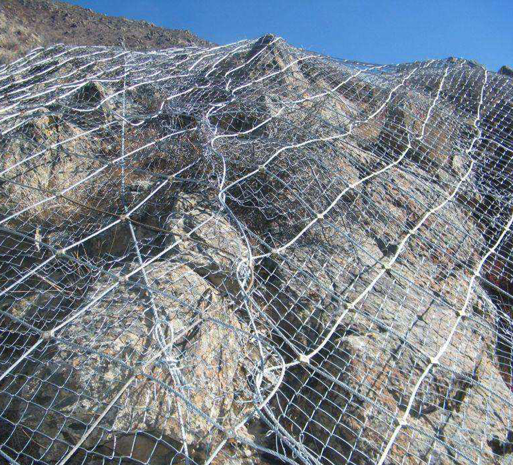 柔性防護(hù)網(wǎng)主要由鋼絲勾花網(wǎng)和鋼絲繩網(wǎng)為主起到護(hù)坡作用的柔性防護(hù)系統(tǒng)。