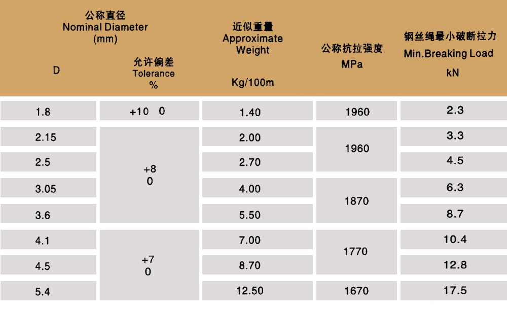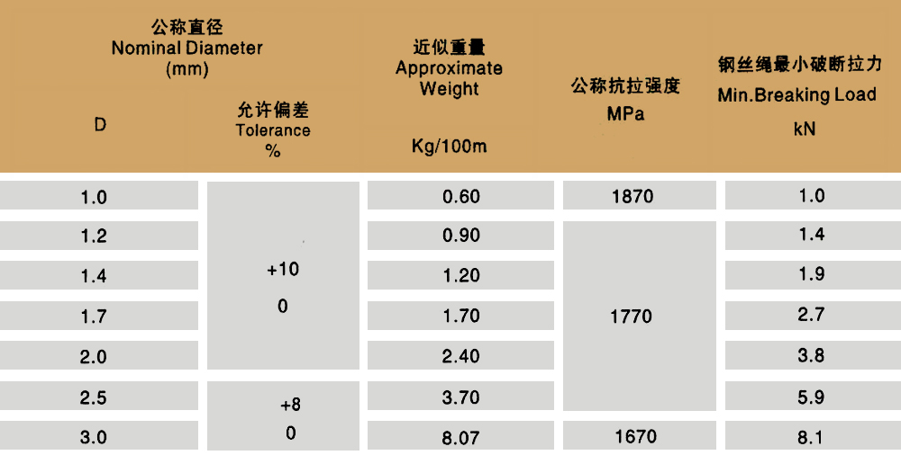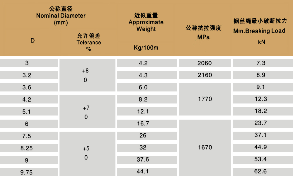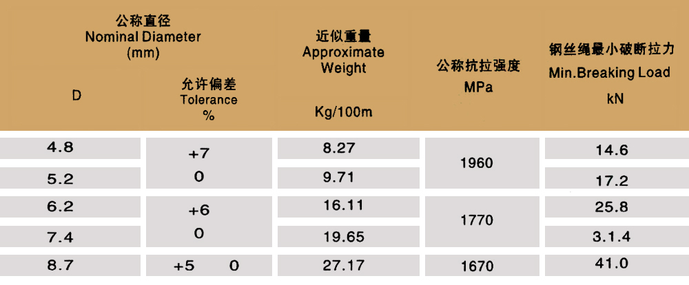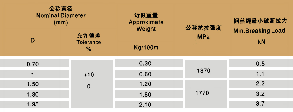 產(chǎn)品規(guī)格:1X7 1X19 6X7+IWS 6X19+IWS 6X7+FC 6X19+FC 6X37+FC