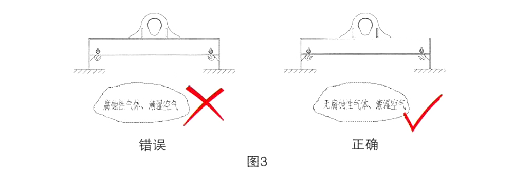 12、吊具不允許在酸、堿、鹽、化學(xué)氣體及潮濕環(huán)境中存放(如圖3)。