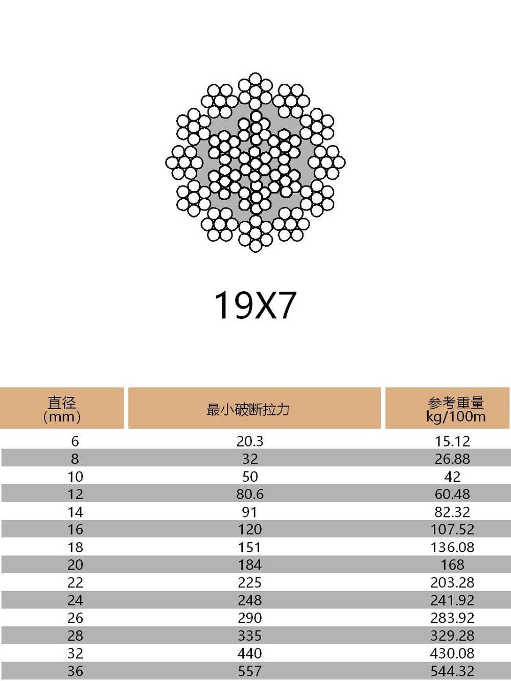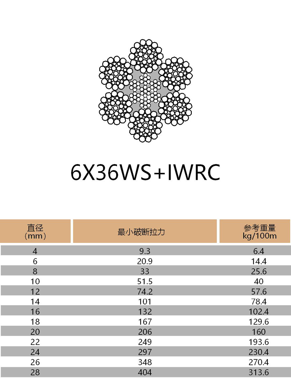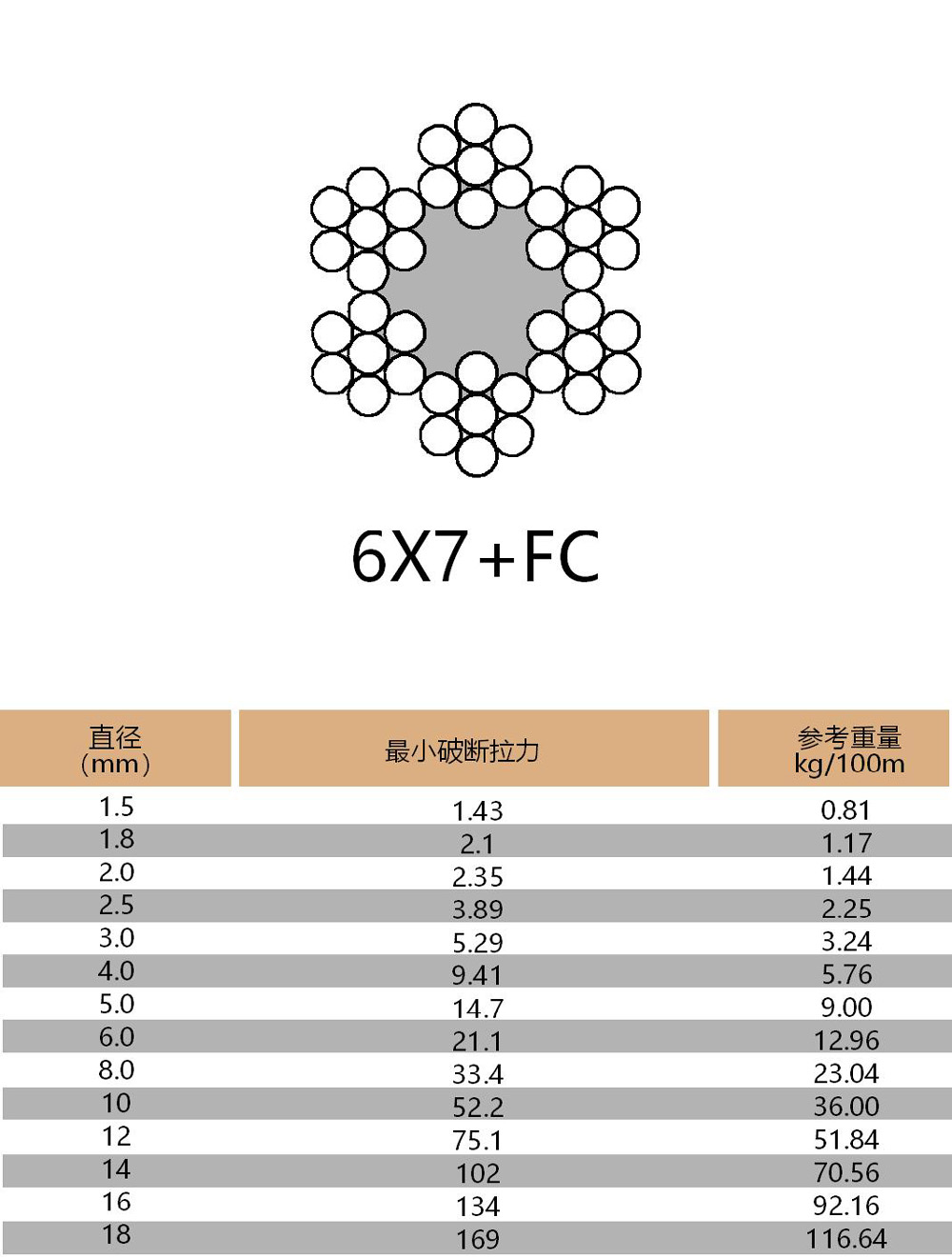 產(chǎn)品結(jié)構(gòu):1X19 6X7-FC 6X19-FC 6X36WS-IWRC 7X7 7X19 19X7