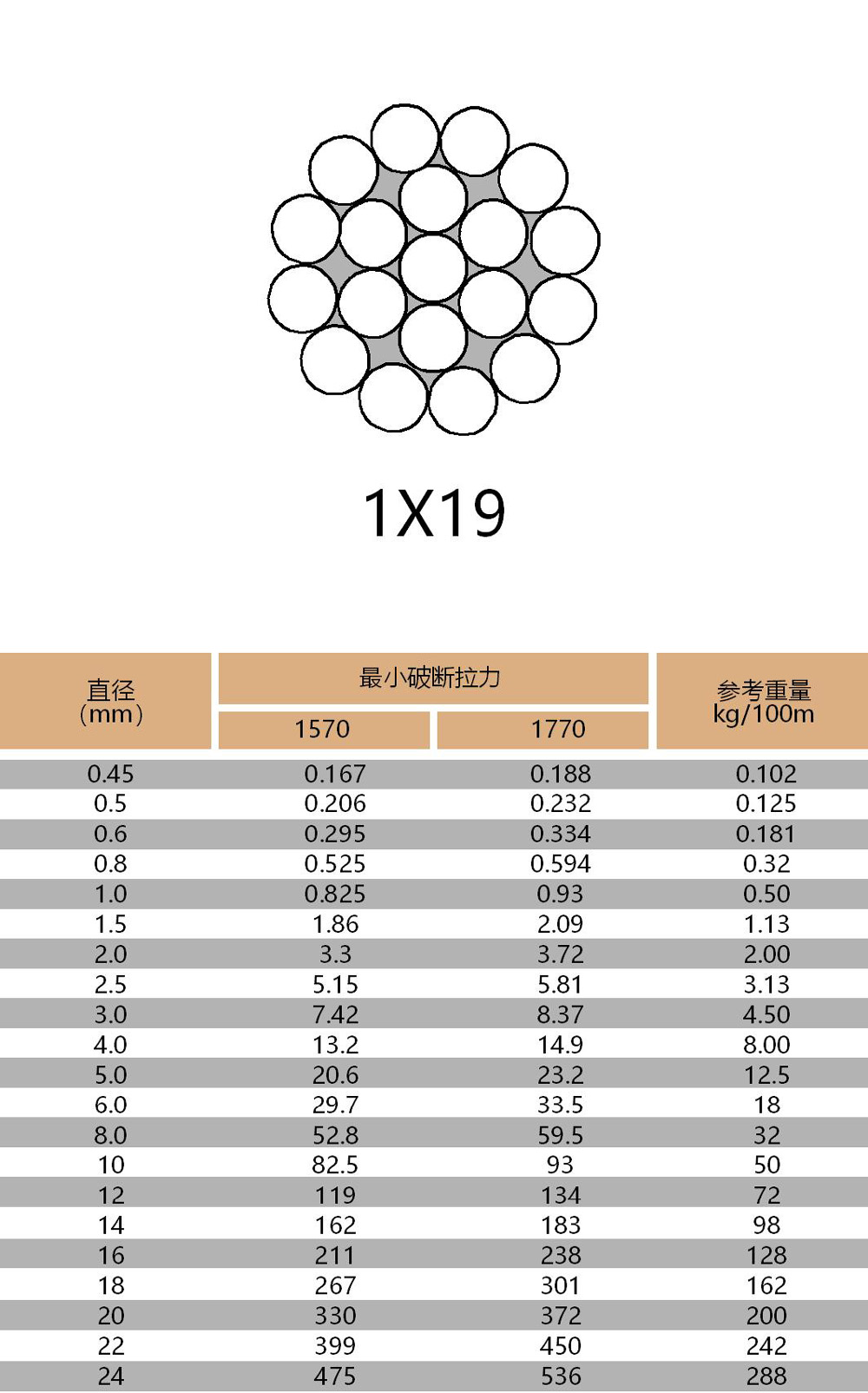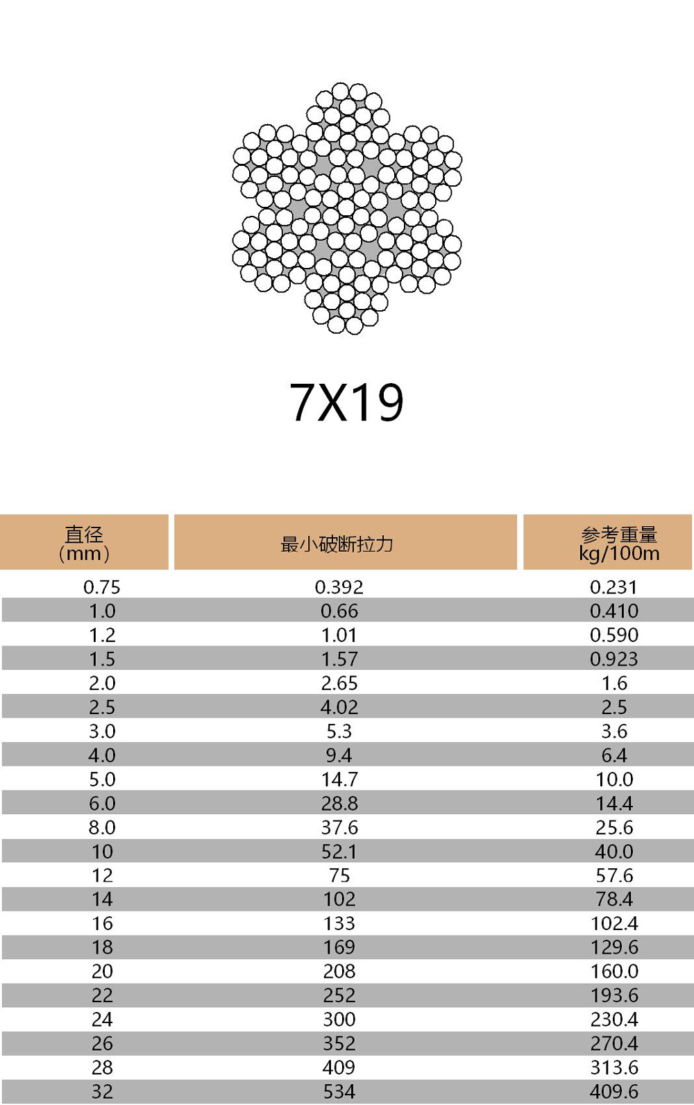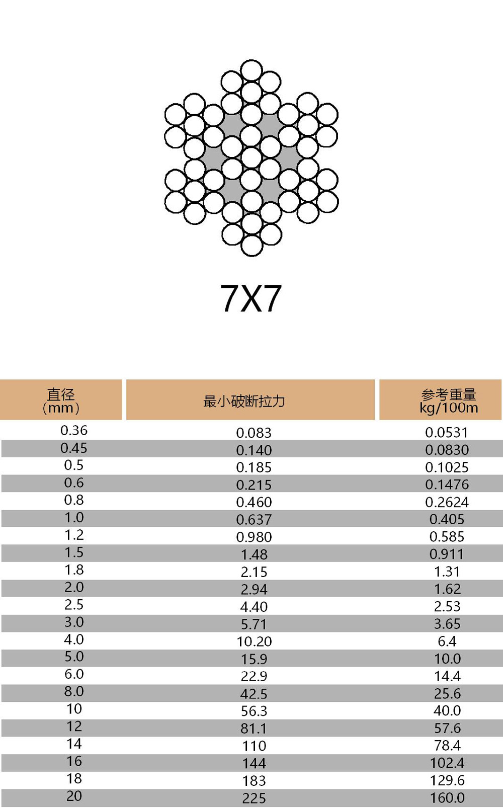 產(chǎn)品結(jié)構(gòu):1X19 6X7-FC 6X19-FC 6X36WS-IWRC 7X7 7X19 19X7