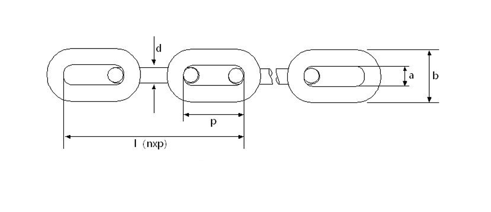 D=鏈環(huán)直徑,P=節(jié)距,L=鏈環(huán)外長(zhǎng)(如圖2)
