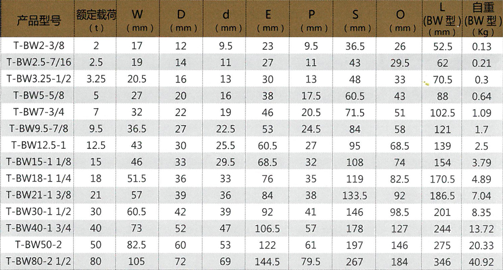 相同額定載荷的T8級(jí)卸扣與S6級(jí)卸扣相比尺寸減小了,但是它們的額定載荷和功能卻沒(méi)有損失,主要用于空間有限的場(chǎng)合