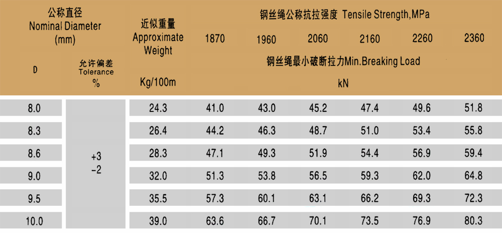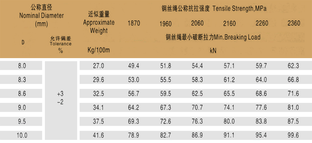 產(chǎn)品規(guī)格:4X25Fi+FC 4X31WS+FC 6X19W+IWS 6X19S+IWR