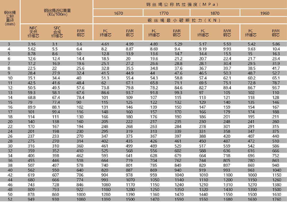 鋼絲繩結(jié)構(gòu):6X19+FC 6X19+IWS 6X19+IWR